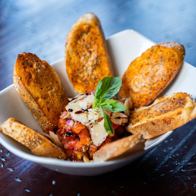 Marinated tomato, proscuitto, arugula, olive oil drizzle, garlic toast points